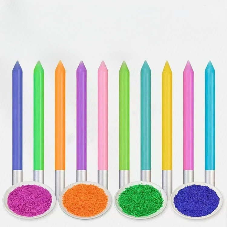 మేము మా ఫిలమెంట్ క్యాండిల్ డై కోసం స్పష్టమైన మరియు శాస్త్రీయమైన మోతాదు మార్గదర్శకాన్ని అందిస్తాము: సిఫార్సు చేయబడిన అదనపు మొత్తం 0.1% నుండి 0.3% వరకు ఉంటుంది (మొత్తం మైనపు బరువులో వెయ్యికి ఒకటి నుండి మూడు వరకు సమానం). కొవ్వొత్తి పనితీరుపై ప్రతికూల ప్రభావాలను నివారించేటప్పుడు సరైన రంగు ప్రభావాన్ని నిర్ధారించడానికి విస్తృతమైన పరీక్షల ఆధారంగా ఈ ఖచ్చితమైన మోతాదు పరిధి రూపొందించబడింది. రంగులో 0.1% నుండి 0.3% వరకు జోడించడం వలన ప్రకాశవంతమైన, ఏకరీతి మరియు సంతృప్త రంగులను పొందవచ్చు; 0.3% కంటే అధికంగా చేర్చడం సిఫారసు చేయబడలేదు, ఎందుకంటే ఇది కొవ్వొత్తుల దహన స్థిరత్వాన్ని ప్రభావితం చేస్తుంది మరియు స్వల్ప జ్వాల-నిరోధక ప్రభావాలకు కూడా దారితీయవచ్చు. ఉపయోగం కోసం, వినియోగదారులు మైనపు మొత్తం బరువు మరియు కావలసిన రంగు లోతుకు అనుగుణంగా తగిన పొడవు ఫిలమెంట్ డైని కట్ చేయాలి, దానిని కరిగించిన పారాఫిన్ మైనపులో జోడించి, కొన్ని సెకన్ల పాటు మెల్లగా కదిలించండి-ఫిలమెంట్ డై త్వరగా కరిగి, సమానంగా చెదరగొట్టబడుతుంది, రంగు ప్రక్రియను సమర్ధవంతంగా పూర్తి చేస్తుంది.